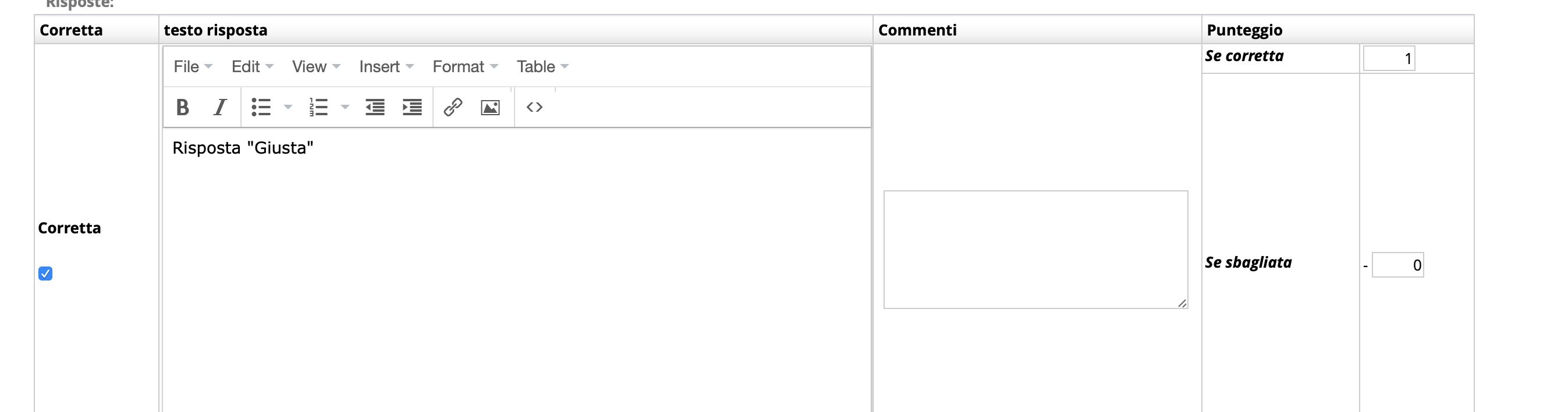 beh, devi dirlo tu al sistema qual è la risposta giusta... quando inserisci le domande ci sono dei radio buttons per indicare quella giusta. Dallo screenshot sembra che tu non l'abbia impostata.