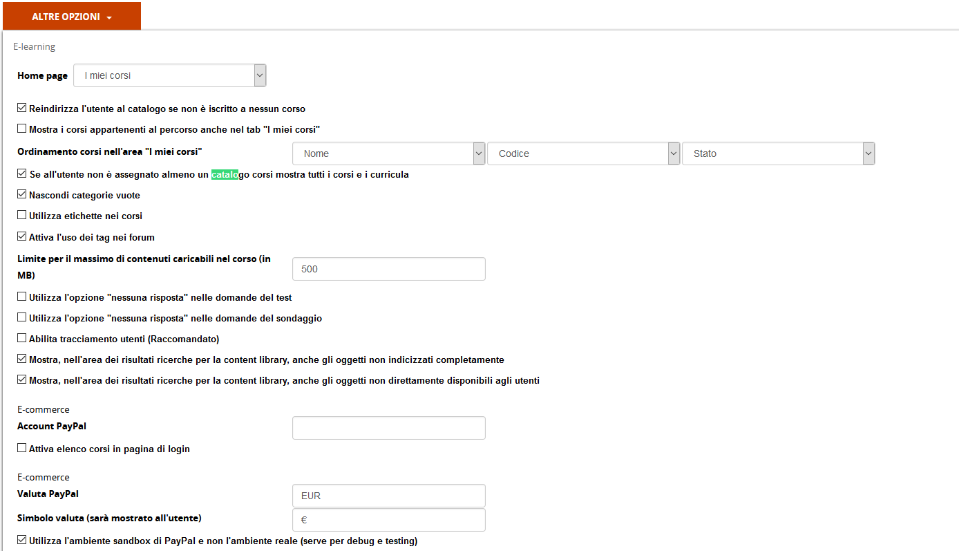 "attiva elenco corsi in pagina di login"