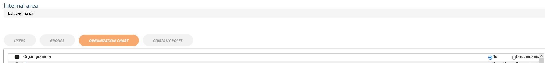 The "Certificates" Block is enabled (green), no user is selected and in Org Chart everything is set to "No".