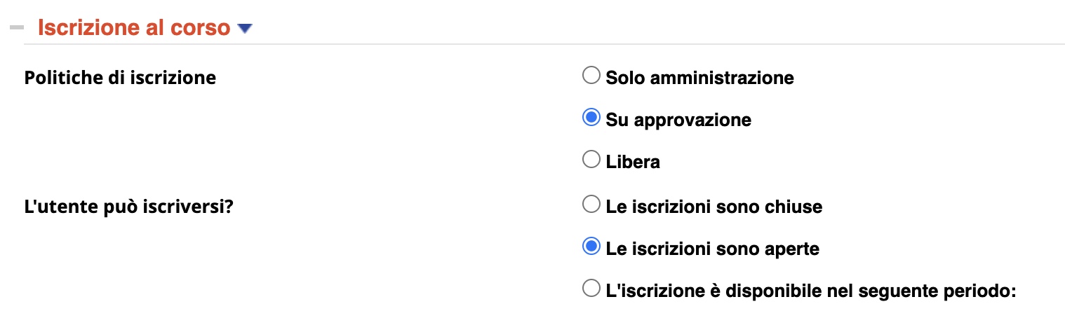 Si le impostazioni sono corrette, quando l'utente invia la richiesta di iscrizione, non compare nella lista degli utenti e l'utente stesso rimane in attesa. Anche se spunto l'opzione "libera" in questo caso l'utente ha il corso sbloccato, ma non compare nella lista degli iscritti.