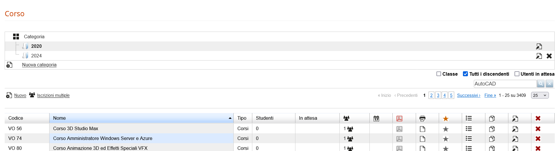 Re: impossibile filtrare per codice corso / impossible to filter by course code