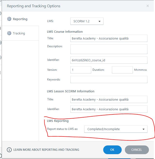 With reporting and tracking, I normally use Scorm 1.2 (but the system works with Scorm 2004, too), I report to the Lms as "Completed/incomplete" and using the number of slide if I have no quiz. If I do have quizzes, I report as "Passed/Failed" and I use the quiz score.