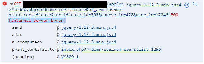 L'errore è generato da /appLms/admin/views/course/list_certificate.php, funzione print_certificate (riga 274) in seguito al fail della chiamata ajax verso /appLms/admin/modules/course/certificate.php, funzione print_certificate (riga 688)